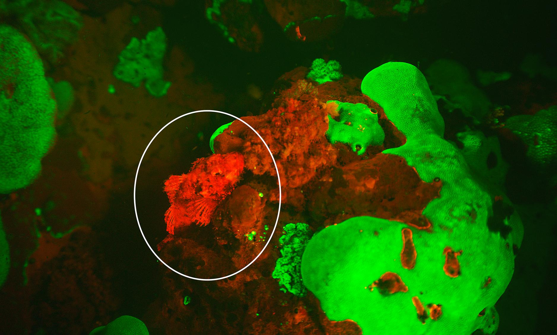 Tuttavia la biofluorescenza permette ad alcune prede di portare il mimetismo ad un nuovo livello. Oltre ai pesci, altri organismi marini, come le alghe, producono emissioni colorate grazie a pigmenti come la clorofilla. Le zone ricoperte da questi organismi, a chi ha il colore giusto, l’ambiente perfetto per nascondersi anche ai predatori più tecnologici.