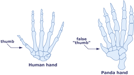 Il pollice del panda, a destra, non è un pollice. Immagine Understanding Evolution http://evolution.berkeley.edu/evolibrary/article/analogy_06